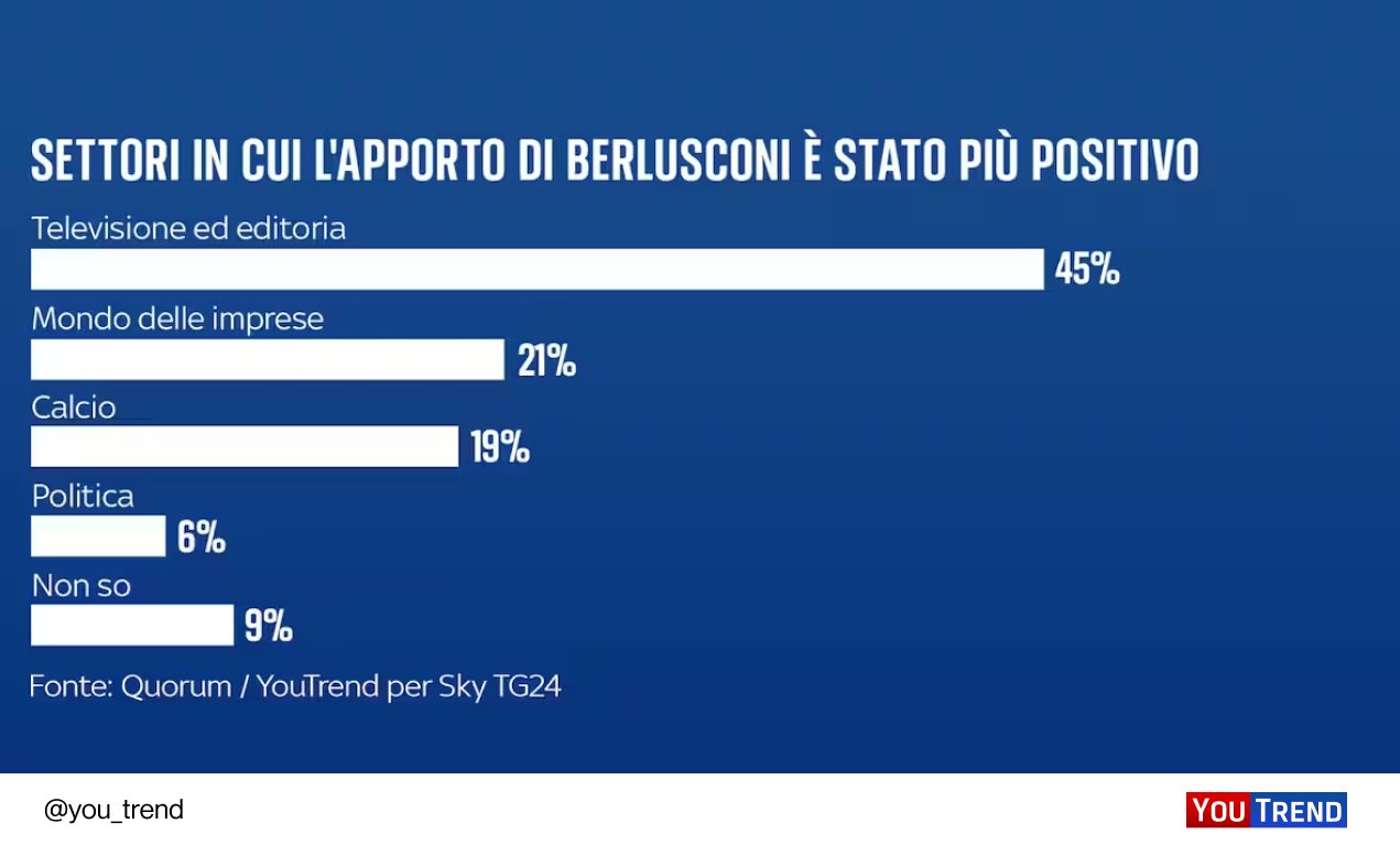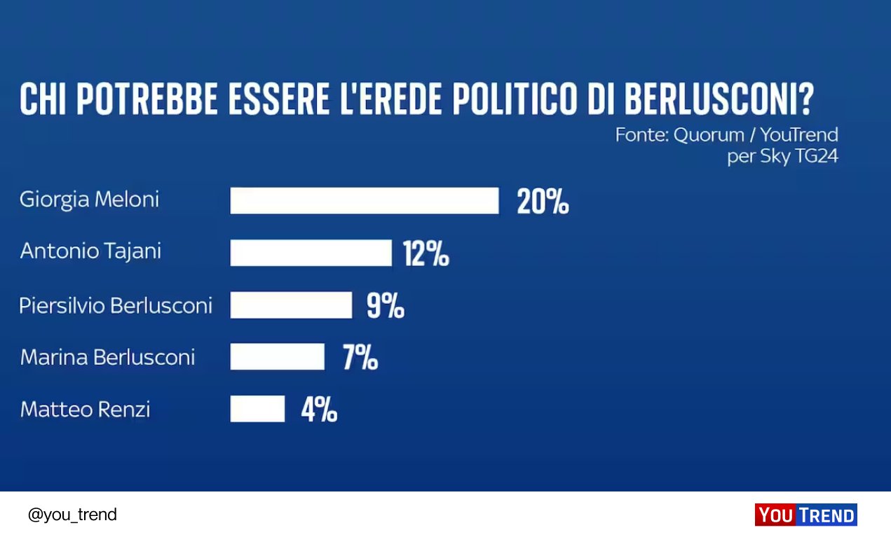 📊 L’erede politico di #Berlusconi? Per il 20% degli italiani è #Meloni, ma per il 40% nessuno.