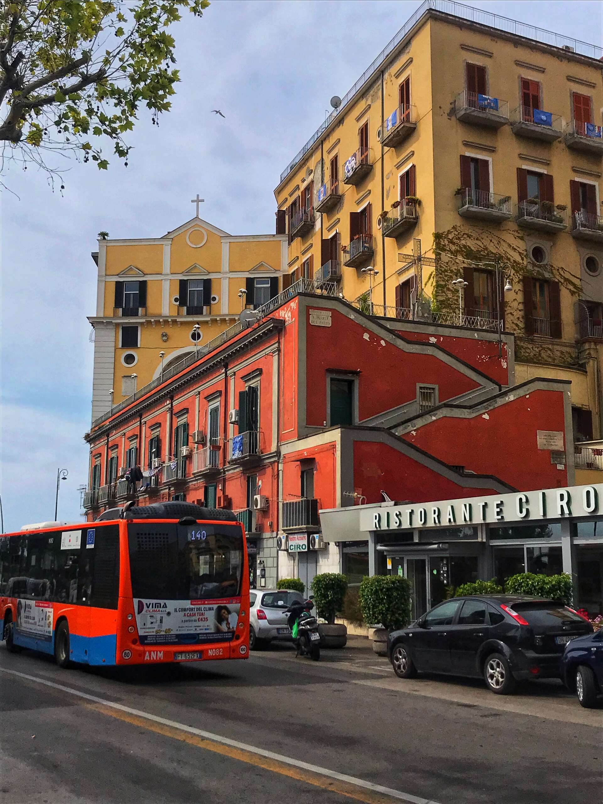 Santa Maria del Parto è incastonata in mezzo ad altri stabili e immobili in un angolo di via Mergellina. Alle spalle di “Nas e’ cane” e de “O’mericano”, tre rampe di scalini per arrivare all’ampio terrazzo che l’introduce. Dolce panorama dalla collina del Vomero al Vesuvio, i pini loricati, il porticciolo e il Castel dell’Ovo. Sulla facciata squadrata, tre balconcini al secondo piano, la targa in marmo che ricorda la fondazione, nel 1529, a opera di Jacopo Sannazaro. Il poeta dell’Arcadia e delle Piscatorie aveva ricevuto in dono quella villa sul declivio di Posillipo – già appartenuta ai principi della casa d’Angiò e ai monaci di Santo Severino – dall’amico Federico d’Aragona che l’aveva acquistata nel giugno 1499.