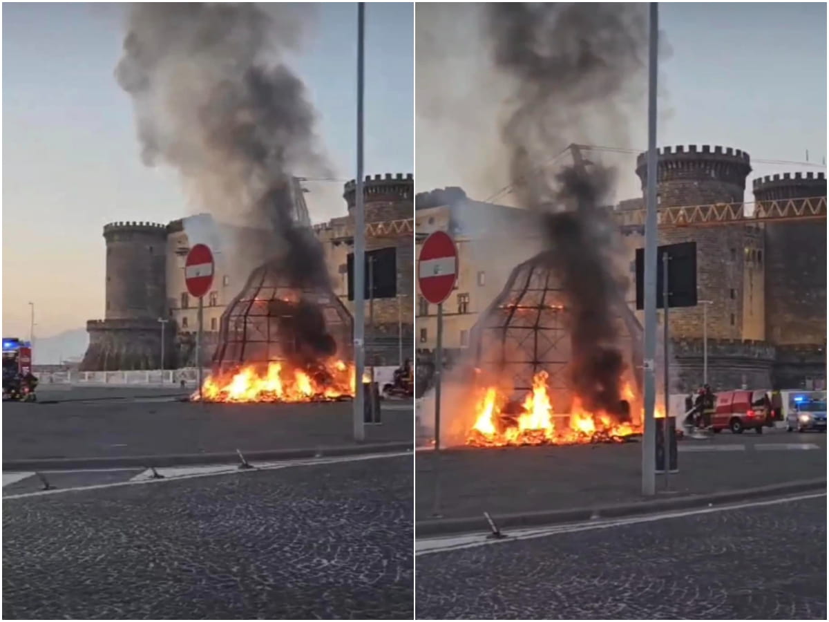 Le fiamme all’opera d’arte hanno causato una densa colonna di fumo visibile in diverse zone della città di Napoli.