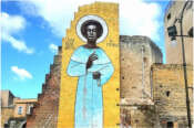 È la chiesa del “Santo Nero”, San Benedetto il Moro, uno dei patroni “minori” della città, che ha appena rinnovato per la 399ma volta la sua devozione, lo scorso 14 luglio, alla “Santuzza”, Santa Rosalia, signora incontrastata della fede panormita. Ma il fatto che stavolta siano bruciate le reliquie, custodite con grande cura dai frati francescani dal 1589, del Santo nero, ha fatto piangere e disperare i molti accorsi appena si è sparsa la notizia. Il fumo degli incendi dopo un po’ dirada, spinto dal vento di scirocco che butta a libeccio, l’incendio che assedia dai monti la città prima o poi si acquieta, ma quando se ne andrà il senso di cattivo presagio per aver lasciato bruciare un santo? Viene subito da andare sotto il grande murales di San Benedetto, voluto dal Mediterraneo Antirazzista e dipinto dall’artista Igor Scalisi Palminteri, a Ballarò. E di cercare quella storia del “santo schiavo”, di cui ha scritto una professoressa dell’Università, Giovanna Fiume.