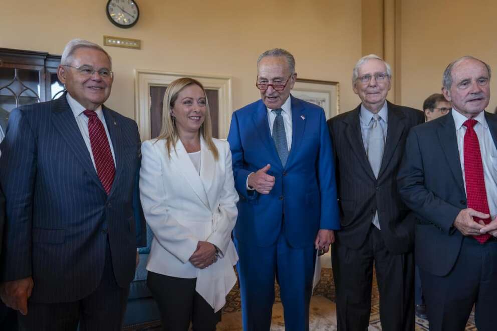 Il siparietto con il leader dei democratici Schumer. "Sì, è per molte cose", ha risposto la premier di Fratelli d'Italia che nel simbolo reca la tanto discussa Fiamma Tricolore
