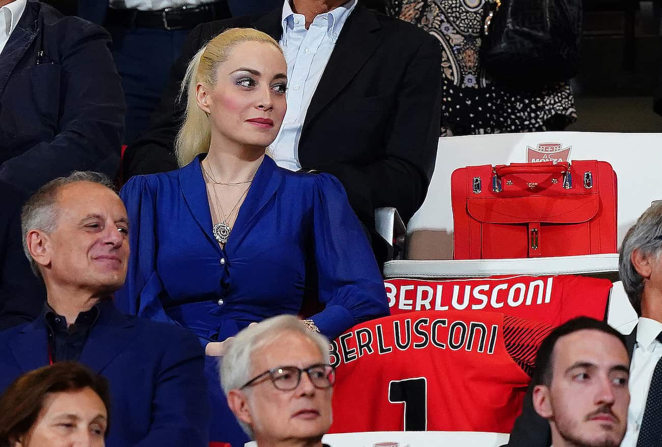 In tribuna Fascina è arrivata mezz’ora prima del calcio d’inizio, accompagnata dall’autista e da Daniela Gozzi, ex dirigente del Milan, ora direttore operativo del Monza. Abito blu lungo, viso pallido, sugli spalti ha preso posto accanto ad un seggiolino vuoto con due maglie ricordo dedicata a Berlusconi, una con i colori del Monza e l’altra del Milan. Dall’altra parte Adriano Galliani e più in là Piersilvio Berlusconi e il fratello minore Luigi, oltre a Paolo Berlusconi, fratello di Silvio.
