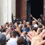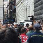 “Giustizia, giustizia!“, “Giovanbattista…VIVE, Giovanbattista…VIVE!“, e poi striscioni, magliette, palloncini bianchi e tanti applausi. In migliaia sono accorsi in piazza del Gesù a Napoli per stringersi intorno alla famiglia di Giovanbattista Cutolo, il giovane ucciso da un 17enne a colpi d’arma da fuoco in piazza Municipio. Oggi si sono svolti i funerali, celebrati dal Vescovo Mimmo Battaglia. Molto toccante la sua omelia, forti le parole di Ludovica, sorella del giovane musicista: “Napoli sei tu e non Gomorra, non è Mare fuori o il Boss delle cerimonie“. Ragazzi, famiglie, bambini, anziani. I cittadini di qualsiasi età ed estrazione sociale hanno partecipato all’evento. Presenti anche le principali istituzioni locali e due ministri, Matteo Piantedosi e Gennaro Sangiuliano.