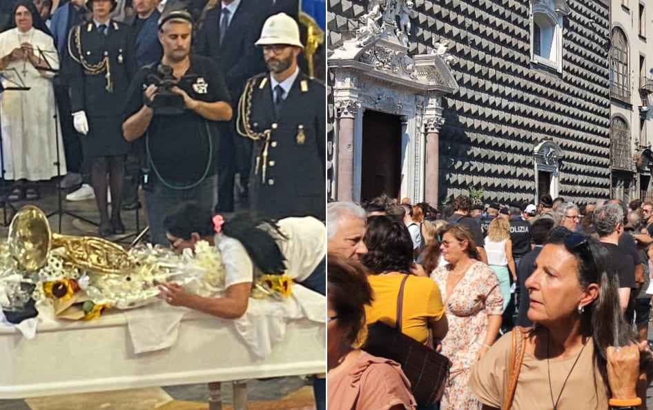 Una piazza del Gesù e una chiesa del Gesù Nuovo gremite. Presenti le principali istituzioni locali e i ministri Piantedosi e Sangiuliano. All'esterno una marea di giovani, famiglie, bambini e anziani. Napoli si è unita in ricordo del musicista ammazzato giorni fa