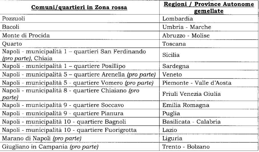 CITTÀ IN ZONA ROSSA – Oltre Napoli tutti i comuni dell’area flegrea dovranno essere evacuati. Gli abitanti di Pozzuoli saranno spostati in Lombardia, mentre quelli di Bacoli tra Umbria e Marche. I residenti di Monte di Procida tra Abruzzo e Molise mentre quelli di Quarto in Toscana. Infine parte dei cittadini di Marano verranno ospitati in Liguria mentre quelli di Giugliano in Campania interessati nelle province di Trento e Bolzano.