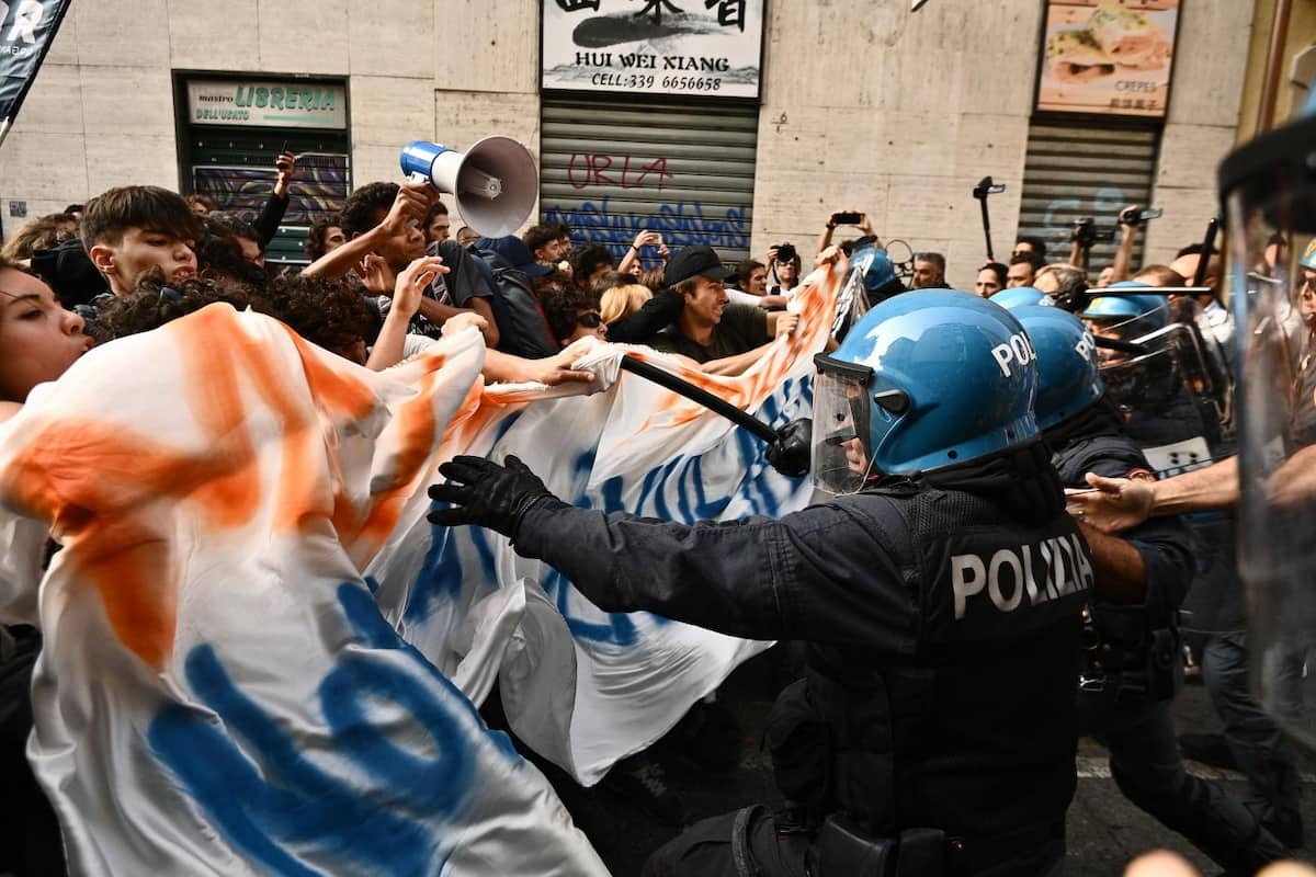 La premier è attesa nel capoluogo piemontese al Teatro Carignano, per un intervento sul palco del Festival delle Regioni. Ma prima del suo arrivo ci sono stati momenti di alta tensione tra manifestanti, radunatisi davanti a Palazzo Nuovo dove ci sono ancora montate le tende della protesta contro il caro affitti degli studenti, e polizia: i primi avevano annunciato di voler raggiungere piazza Castello, sede delle facoltà umanistiche dell’università subalpina, nonostante i blocchi e infatti vi sono stati scontri, manganellate da parte delle forze dell’ordine in assetto antisommossa e lanci di uova da parte degli studenti e attivisti.