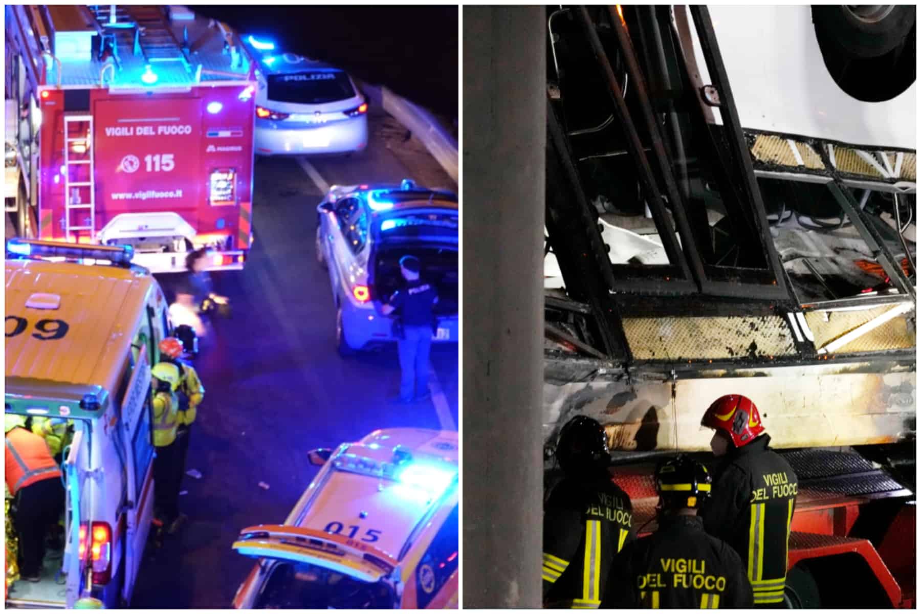 È sera, sul cavalcavia Vempa a Mestre c’era traffico. Una coda di automobili tra le quali svettavano un paio di autobus. Uno di questi si sta muovendo sulla destra. Stava trasportando 35 persone, dirette da Venezia al campeggio di Marghera. La velocità sembrava nella norma. Poi, all’improvviso quella che è stata definita una ‘manovra impropria‘. La vettura è andata contro il guardrail precipitando nel vuoto. La caduta dal ponte ha causato una strage: 21 le persone che hanno perso la vita. Tra queste c’erano un neonato e due minorenni. Sette coloro che sono stati identificate, cinque cittadini ucraini, l’autista italiano e un cittadino tedesco. 15 vittime sono rimaste ferite e sono al momento ricoverate in ospedale. Il drammatico incidente è avvenuto durante la serata di ieri ed ha sconvolto l’intero paese.