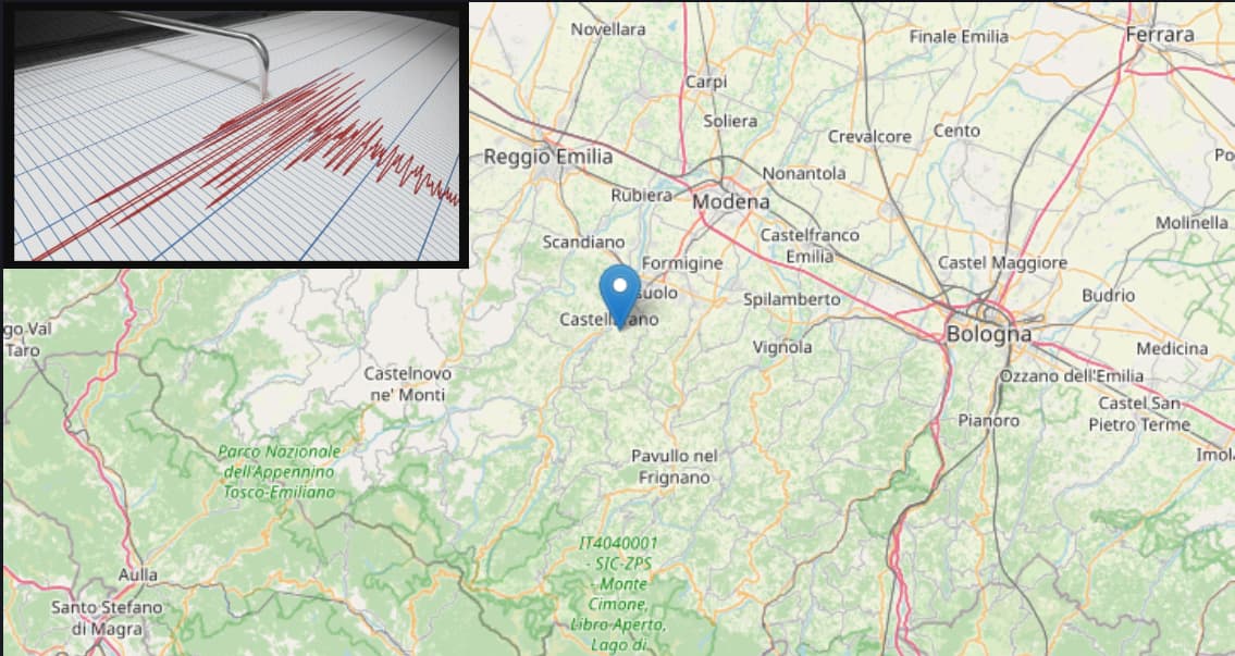 con coordinate geografiche (lat, lon) 44.4950, 10.7440 ad una profondità di 9 km.