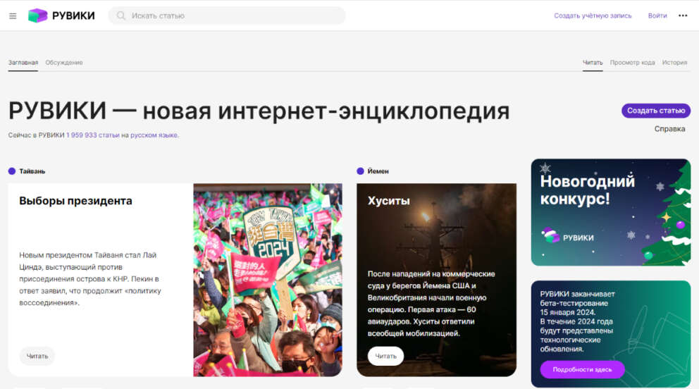 Il debutto il 15 gennaio, dopo alcuni mesi di beta testing. Wikipedia è ancora attiva in Russia, è stato l’ottavo sito più visitato in Russia nel corso del 2023