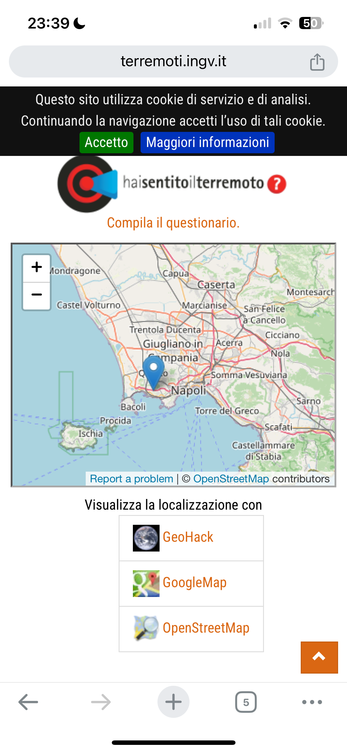 Una forte scossa di magnitudo 2,5 avvenuta alla profondità di circa 2 chilometri c’è stata alle 22,49 circa ai Campi Flegrei. Il terremoto ha spaventato i cittadini che si accingevano ad andare a dormire e che sui social hanno iniziato a confrontarsi per capire fin dove si è avvertita.