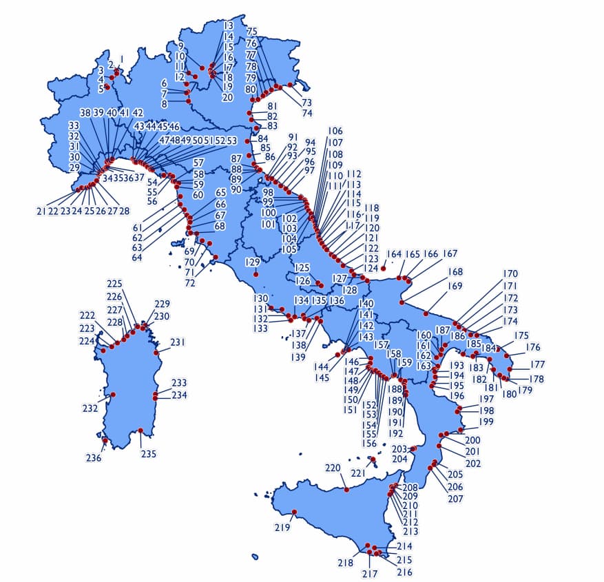 Nel complesso 236 comuni mettono insieme 485 spiagge premiate (ogni località può comprendere infatti più tratti Bandiera Blu): parliamo di circa l’11,5% delle spiagge premiate a livello mondiale