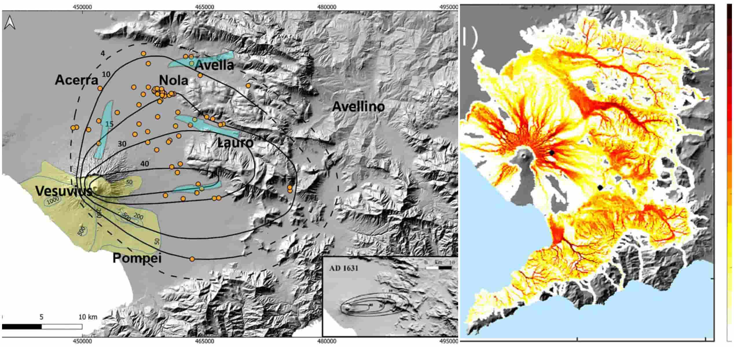 Per la prima volta, realizzato lo studio sul complesso della pericolosità probabilistica delle colate di fango (lahar) susseguenti due eruzioni storiche del Vesuvio. Con un progetto ambizioso, un team multidisciplinare di ricercatori dell’Istituto Nazionale di Geofisica e Vulcanologia (INGV), della Heriot-Watt University (UK), dell’Università di Pisa, dell’Università di Torino e dell’Università di Bari, è riuscito a valutare quantitativamente la pericolosità sulla Piana Campana delle possibili colate di fango causate dalla rimobilizzazione dei depositi di caduta e dei flussi piroclastici durante, o nei mesi immediatamente successivi, un’eruzione del Vesuvio simili a quelle sub-pliniane del 472 e del 1631 d.C.. I risultati dello studio, finanziato dal Dipartimento della Protezione Civile (DPC), sono stati pubblicati in tre articoli correlati sulla rivista scientifica internazionale ‘Solid Earth’, dell’European Geophysical Union (EGU).