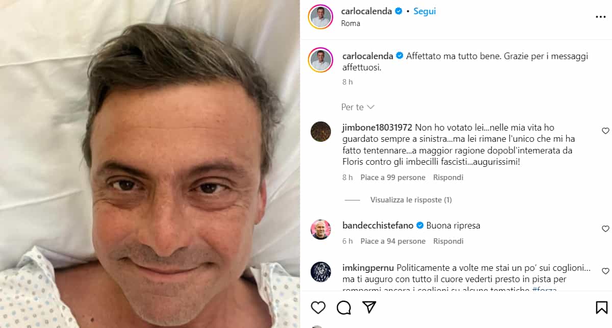 Carlo Calenda ha fatto sapere tramite i suoi canali social di essersi sottoposto a un intervento chirurgico. “Affettato ma tutto bene. Grazie per i messaggi affettuosi”, ha scritto l’ex ministro e leader di Azione postando un selfie dal letto d’ospedale. L’intervento era programmato da tempo, a una manciata di mesi da un altro intervento piuttosto delicato.