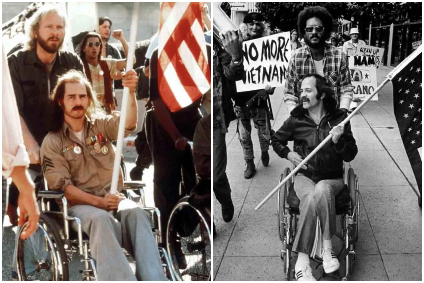La pellicola, vincitrice anche di due premi Oscar, ha narrato la storia vera del veterano di guerra, reduce dal Vietnam, Ron Kovic, costretto sopra una sedia a rotelle a causa de traumi subiti durante il conflitto. Kovic, al suo ritorno a casa, diventò uno dei principali attivisti che ha lottato e manifestato contro le tendenze belliciste del suo Paese. Diventato un leader del movimento pacifista, Kovic riuscì ad essere invitato a parlare alla Convention democratica del 1976.