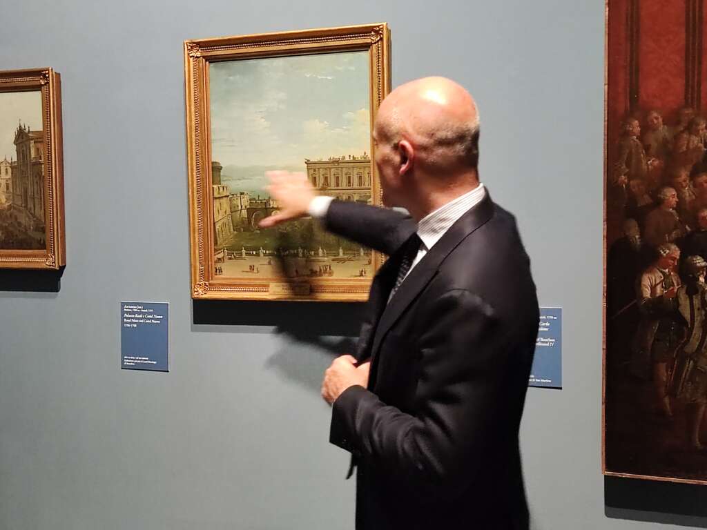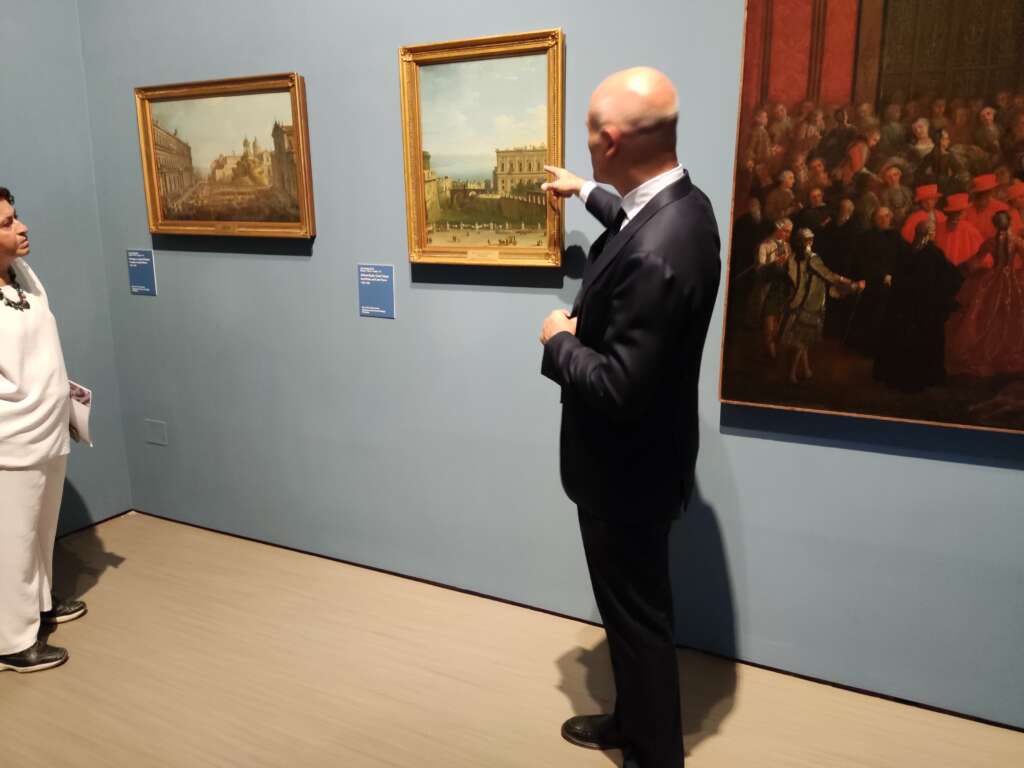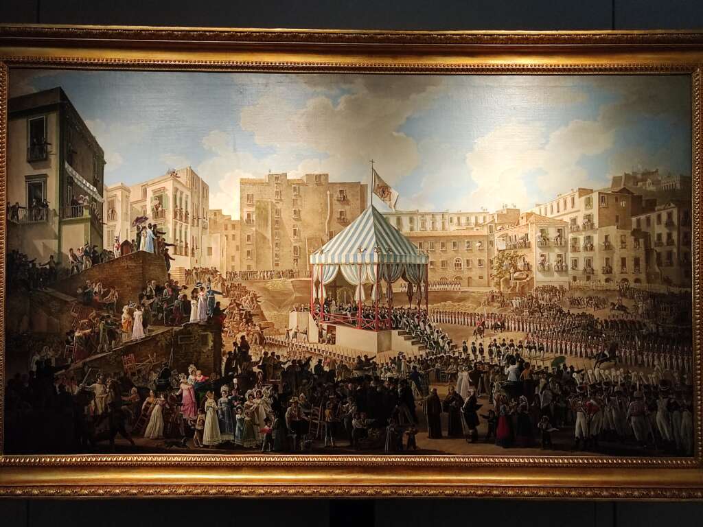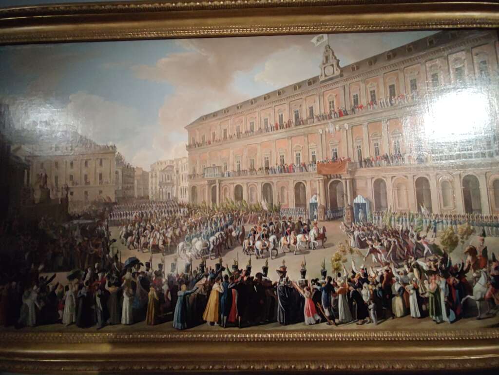 La seconda, allestita dall’architetto Stefano Gei al piano nobile, nella Galleria del Genovese, sarà visitabile fino al prossimo 3 settembre. La mostra è stata integrata al percorso della Fabbrica e con le sue opere ha ripercorso la storia di Palazzo Reale. Al suo interno vi sono quadri, sculture e disegni giunti in prestito in gran parte da istituzioni museali statali napoletane, primo fra tutti il Museo di San Martino, ma anche dal Museo di Capodimonte, dall’Archivio di Stato di Napoli, dalla Biblioteca Nazionale “Vittorio Emanuele III” e dalla Reggia di Caserta. Altre opere sono arrivate da collezioni pubbliche e private di Napoli (Gallerie d’Italia e Museo Civico Gaetano Filangieri), Roma (Galleria Carlo Virgilio & C.) e Firenze (Musei del Bargello). Hanno arricchito l’esposizione anche prestiti dall’estero, ovvero due dipinti di Antonio Joli appartenenti alla collezione di Lord Montagu di Beaulieu in Inghilterra, restaurati per l’occasione grazie al finanziamento dal Palazzo Reale di Napoli.