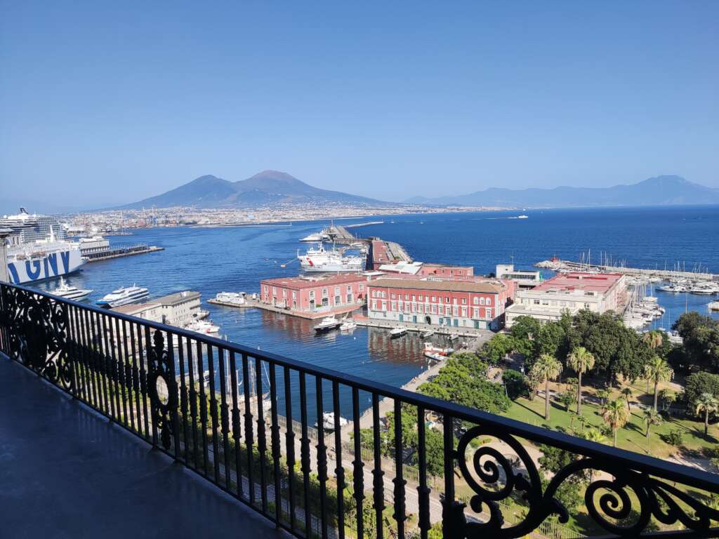 Ma il fiore all’occhiello della giornata è stata l’apertura del Belvedere. Un luogo splendido dalla vista panoramica meravigliosa e mai aperto prima, dall’anno della sua realizzazione: era il 1837, quando il Re Ferdinando II di Borbone ne commissionò la costruzione all’architetto Gaetano Genovese. “È stato fatto un lavoro importante e costoso, pensato in passato ma mai realizzato – ha spiegato l’architetto Padricelli – Quando abbiamo iniziato a lavorarci vi avevamo trovato, oltre a un grave stato di abbandono e degrado, tantissimi gabbiani e i loro nidi“. Il restauro del Belvedere, uno spazio di 150 metri quadri ad un’altezza di 70 metri, è durato un anno e sei mesi. I lavori sono stati affidati all’architetto Francesco Delizia, diretti dall’architetto Padricelli ed eseguiti dalla ditta Modugno. Ci siamo arrivati salendo dalla Scala A, sotto il porticato, lato Piazza Trieste e Trento. Un cammino ‘nel tetto’ di Palazzo Reale, un percorso rimesso a nuovo e in sicurezza tra le travi del soffitto, che ha portato al torrino. Infine, ecco l’accesso a questa parte ‘intima’ e riservata, un tempo, esclusivamente dai reali. È il punto più alto di Napoli in questa zona, dal quale si può ammirare la città a 360°, da San Martino al Vesuvio. Da oggi napoletani e turisti possono riempirsi gli occhi con questo spettacolo.