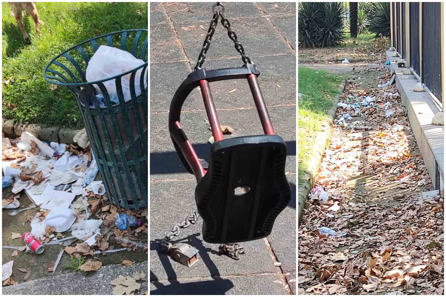 Giostra rotte e immondizia nell’area della Villa Comunale di Napoli