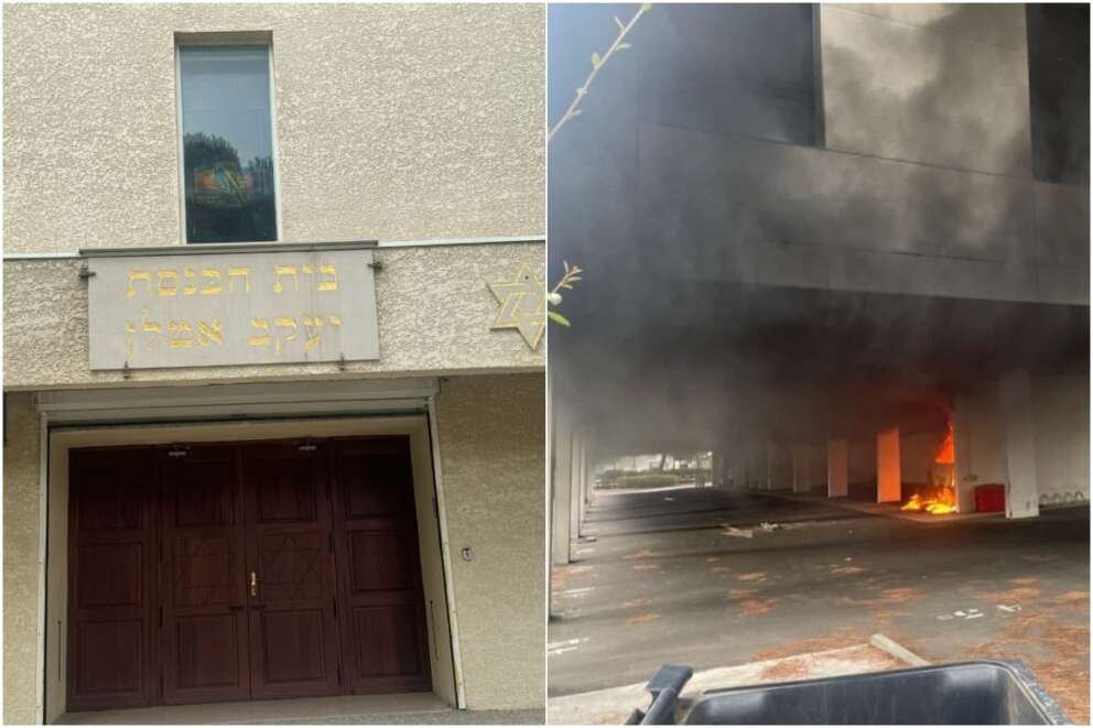 Nella mattina di sabato 24 agosto almeno due auto, cui una contenente una bombola di gas, sono state incendiate davanti il luogo di culto ebraico provocando un’esplosione che ha ferito un agente della polizia municipale che stava lavorando alla messa a punto di un sistema di sicurezza.