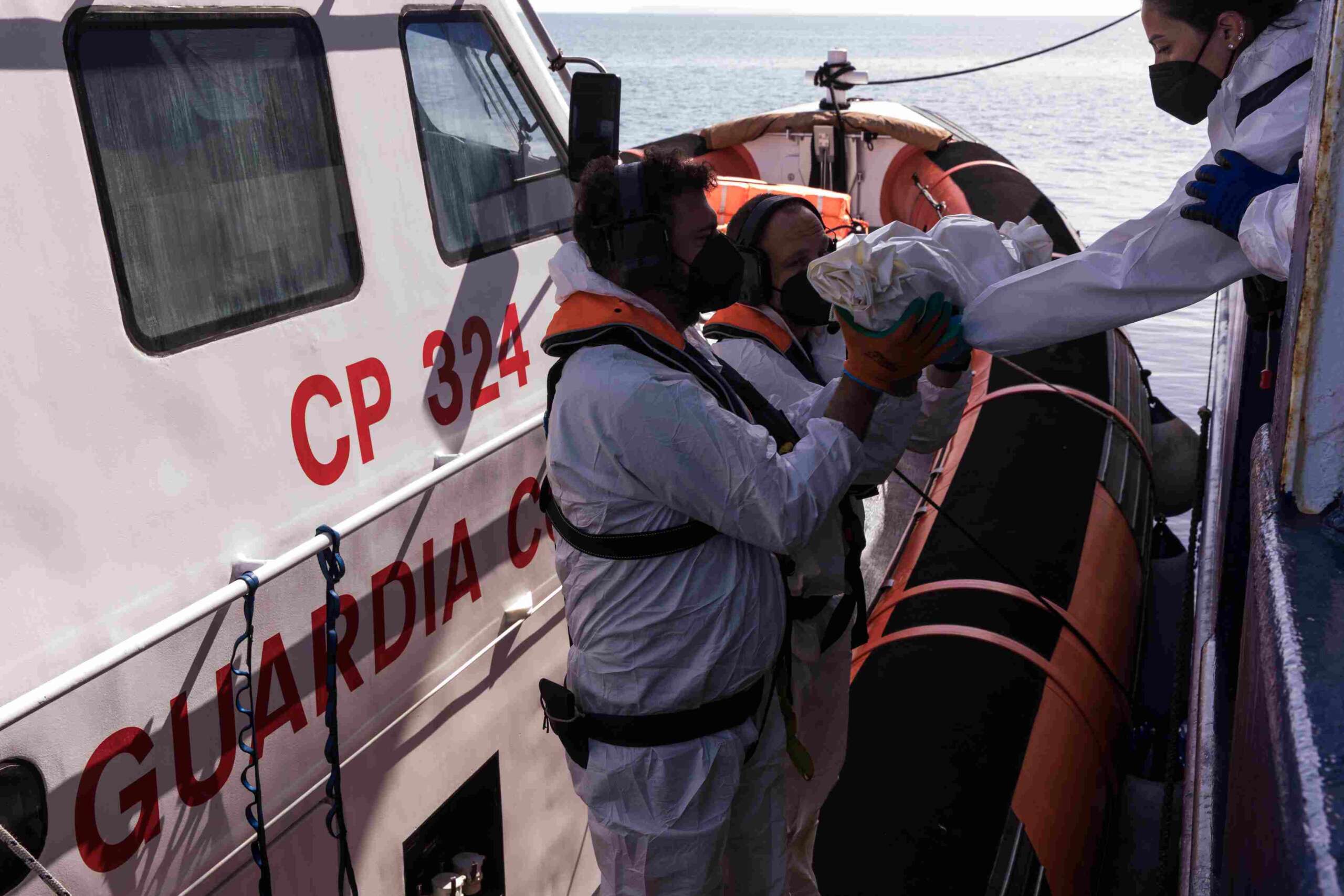 Mentre ci accalchiamo nell’angusto spogliatoio, sentiamo frammenti della notizia: nell’oscurità, quelli di noi di vedetta hanno visto una piccola barca davanti alla quale stavamo passando per caso. Guardo oltre la ringhiera: a poche centinaia di metri di distanza, una piccola barca dondola tra le onde grigie. Questa vicinanza è pericolosa, bisogna evitare che la barca sia spinta dalle onde troppo vicino alla nostra grande nave. Quindi acceleriamo, guadagniamo distanza e tempo e caliamo le scialuppe di salvataggio in acqua. Il rhib con a bordo il coordinatore della ricerca e salvataggio è sempre il primo e va avanti. Sento alla radio che si tratta di una piccola barca di metallo con la linea di galleggiamento pericolosamente bassa. Quando arriviamo vedo i miei colleghi che portano a bordo una donna senza giubbotto di salvataggio e poi un bambino. Si allontanano di nuovo e tornano alla nave madre a tutta velocità. Sono brevemente sorpreso e arrabbiato per la manovra rischiosa. “Codice rosso, codice rosso, bambino incosciente.”