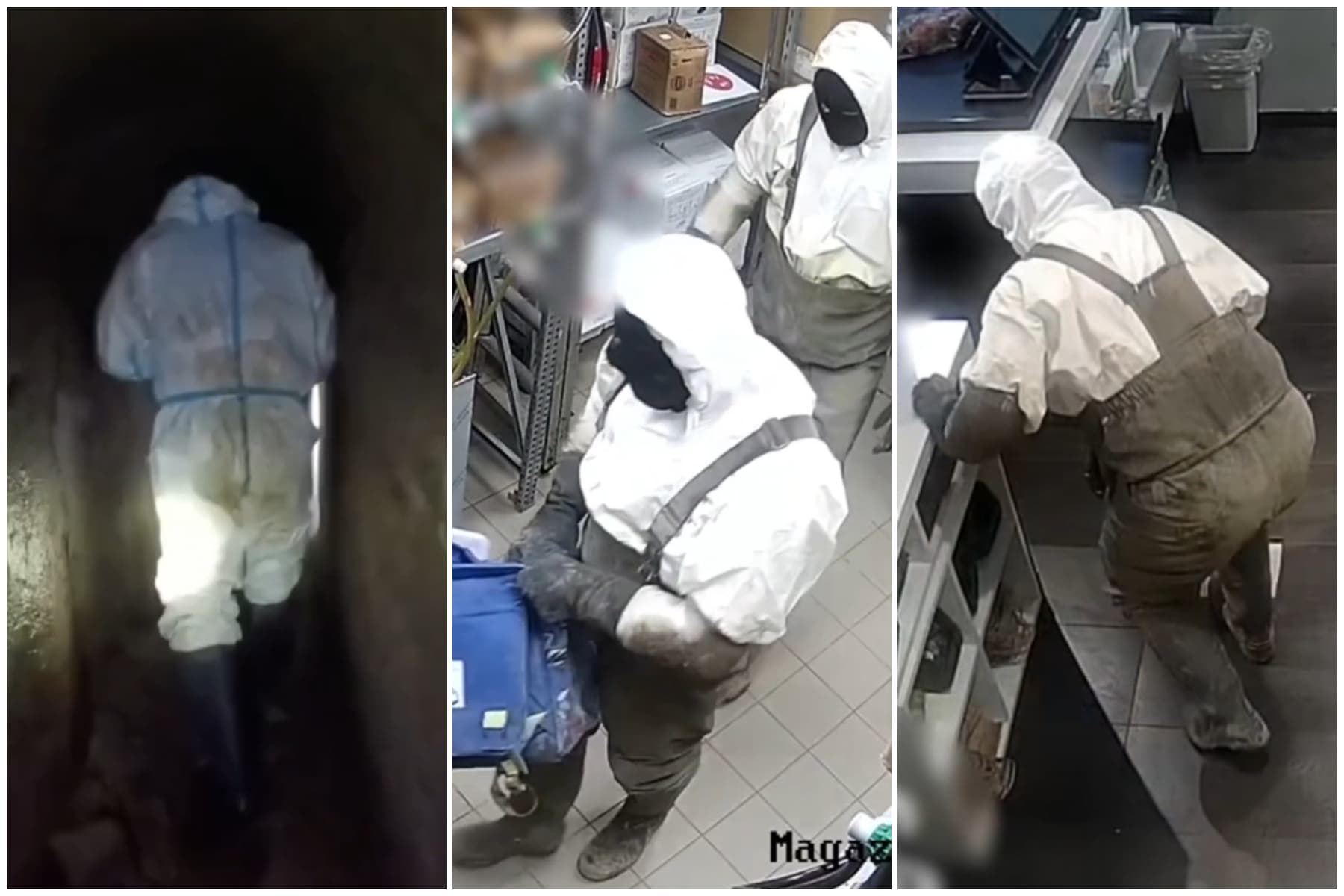 00:49 ispezione nelle fogne dei Carabinieri e di personale specializzato. È parte dei tunnel percorsi dagli indagati per raggiungere il luogo del colpo;