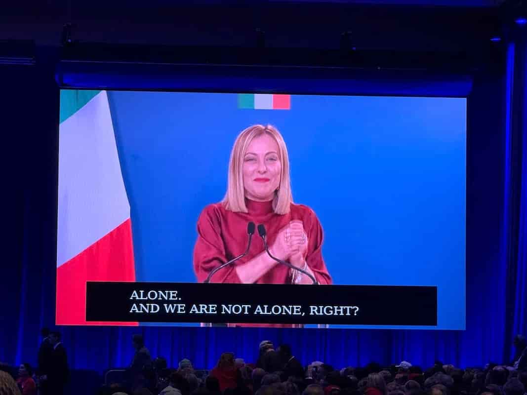 Non un passo indietro da parte di Giorgia Meloni, la Presidente del Consiglio italiano, che a differenza di Jordan Bardella non rinuncia al suo intervento da remoto al Cpac, la convention di tre giorni delle destre negli Stati Uniti, la Conservative Political Action Conference fondata da Ronald Reagan negli anni ’80 dove Steve Bannon si è esibito in un saluto romano, innescando il forfait del politico francese, e dove il presidente argentino Javier Milei ha regalato una motosega a Elon Musk.