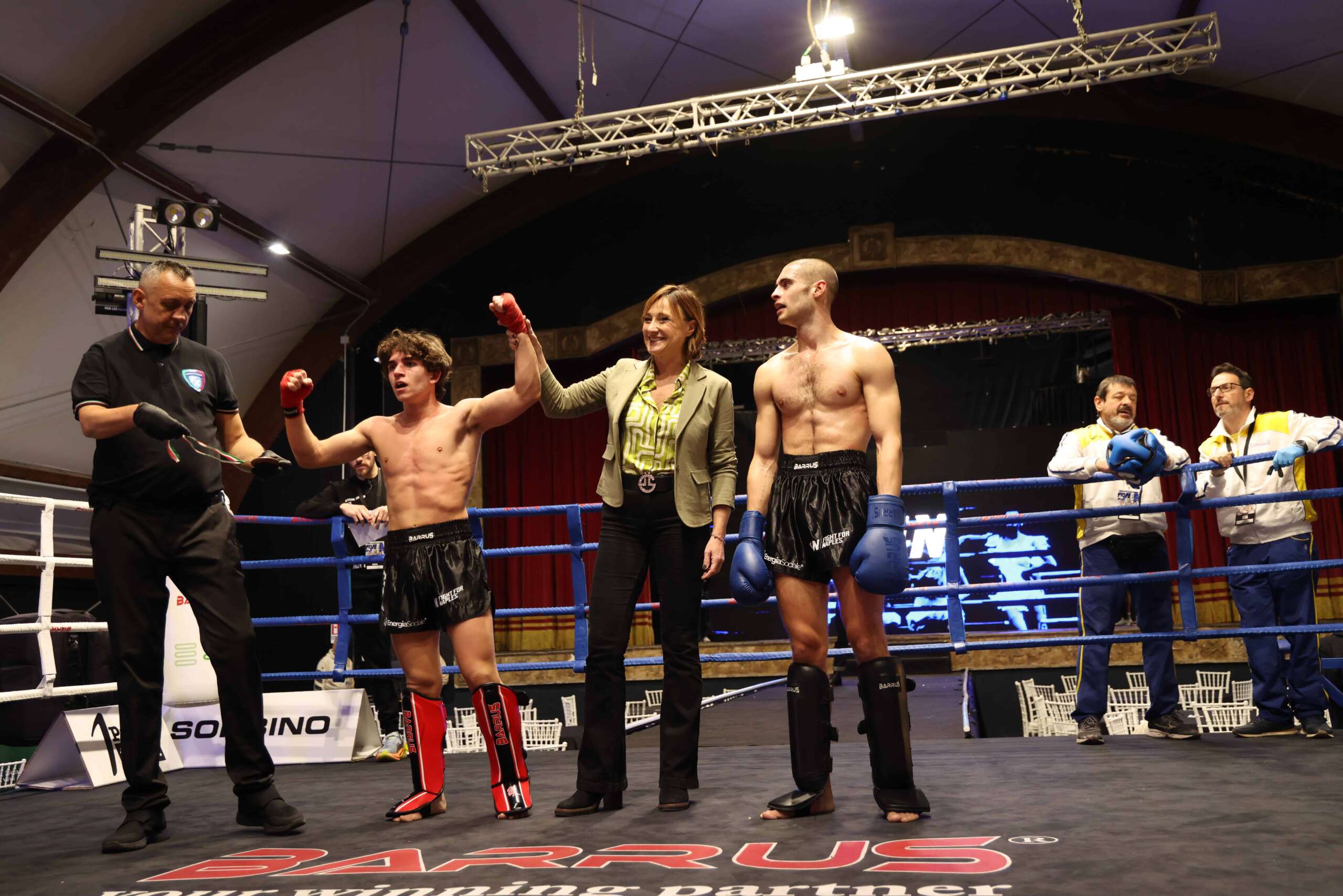 I momenti clou della giornata hanno avuto inizio a partire dalle 12 con il torneo Barrus Fight League, che ha visto protagonisti quattro atleti di K-1 (particolare disciplina che unisce Muay Thai, Karate, Taekwondo e Kickboxing). Queste le categorie: due maschili, -70 kg e -63,5 kg, e una femminile, -60 kg. A seguire, ci sono stati gli incontri principali della serata. Tra questi, i due match semi-professionisti FPI, con Salvatore Attrattivo (campione Italiano) e Raffaele Manzo, entrambi campani, che hanno battuto, rispettivamente, il 19enne Filippo Seca (medaglia d’Argento ai campionati Italiani Assoluti 2024) e ‘The Nightmare’ Giordano Giansanti. Vittoria anche per la professionista Chiara Pagliuca. Infine, Daniele Iodice (campione Italiano), altro talento campano, ha pareggiato contro il kickboxer Marco Ferroni.