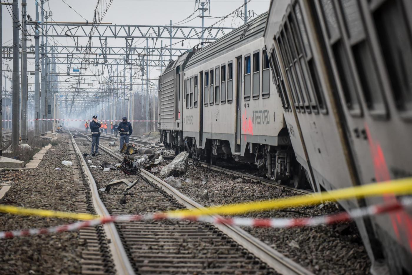 Sono le 7.01 del 25 gennaio 2018 quando il treno 10452 esce dai binari e tre delle sei carrozze, dopo il deragliamento, si ribaltano. Tra le lamiere della carrozza numero 3 muoiono Pierangela Tadini, 51 anni, Giuseppina Pirri, 39 anni, e Ida Maddalena Milanesi, 61, dottoressa dell’ospedale neurologico Carlo Besta di Milano. Dall’ispezione della sede ferroviaria “viene accertato sul binario una rottura della superficie della rotaia” che diventerà il ‘punto zero’ per l’inchiesta. Quello spezzone che manca, circa 23 centimetri, sbalzato a “diversi metri di distanza” è per la procura la causa del deragliamento e grazie a una telecamera che punta sul tratto ferroviario emerge che “I problemi che stava dando quel giunto duravano da qualche giorno”. Al passaggio del treno su quel tratto si generano scintille, le prime scintille già a partire dal 17 gennaio, proseguono e aumentano intensità e frequenza” con l’incremento dell’erosione.