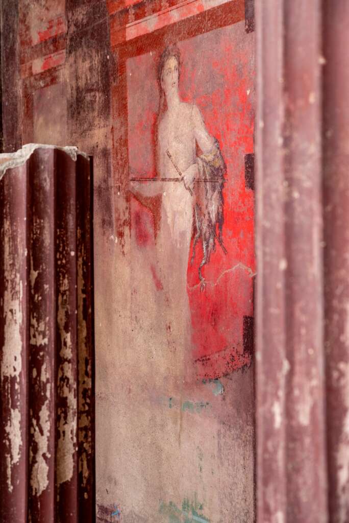 “La caccia delle baccanti di Dioniso – spiega il direttore del Parco archeologico di Pompei, Gabriel Zuchtriegel, co-autore di un primo studio del nuovo rinvenimento pubblicato sull’E-Journal degli Scavi di Pompei – a partire dalle ‘Baccanti’ di Euripide del 405 a.C., una delle più amate tragedie dell’antichità, diventa una metafora per una vita sfrenata, estatica, che mira a ‘qualcosa di diverso, di grande e di visibile’, come dice il coro nel testo di Euripide. La baccante esprimeva per gli antichi il lato selvaggio e indomabile della donna; la donna che abbandona i figli, la casa e la città, che esce dall’ordine maschile, per danzare libera, andare a caccia e mangiare carne cruda nelle montagne e nei boschi; insomma, l’opposto della donna ‘carina’, che emula Venere, dea dell’amore e delle nozze, la donna che si guarda nello specchio, che si ‘fa bella’. Sia il fregio della casa del Tiaso sia quello dei Misteri mostrano la donna come sospesa, come oscillante tra questi due estremi, due modalità dell’essere femminile a quei tempi. Sono affreschi con un significato profondamente religioso, che però qui avevano la funzione di adornare spazi per banchetti e feste… un po’ come quando troviamo una copia della Creazione di Adamo di Michelangelo su una parete di un ristorante italiano a New York, per creare un po’ di atmosfera. Dietro queste meravigliose pitture, con il loro gioco con illusione e realità, possiamo vedere i segni di una crisi religiosa che stava investendo il mondo antico, ma ci possiamo anche cogliere la grandezza di una ritualità che risale a un mondo arcaico, almeno fino al II millennio a.C., al Dioniso dei popoli micenei e cretesi, che era chiamato anche Zagreus, signore degli animali selvatici”.