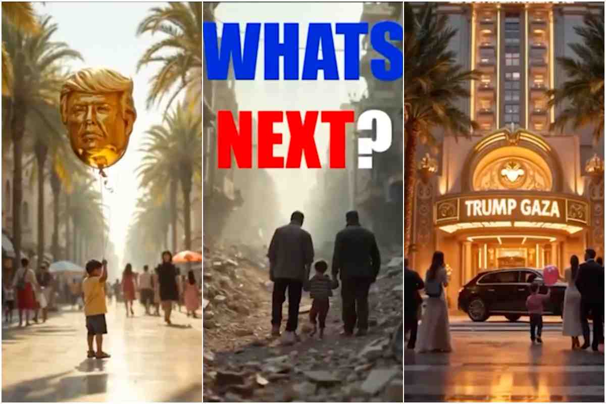 Incredibile, ripugnante, ma vero. Per ora in forma “virtuale”, in attesa di essere realizzato. Il presidente degli Stati Uniti ha pubblicato sulla sua piattaforma social Truth una clip generata dall’intelligenza artificiale in cui illustra la sua visione per il futuro di Gaza. Il video mostra la situazione attuale della Striscia, dove la maggior parte degli edifici è stata distrutta dai bombardamenti israeliani, e poi un futuro fatto di grattacieli, discoteche, cieli da cui piovono banconote, bambini che tengono in mano palloncini con il volto di Trump e anche un’enorme statua d’oro del presidente degli Stati Uniti.