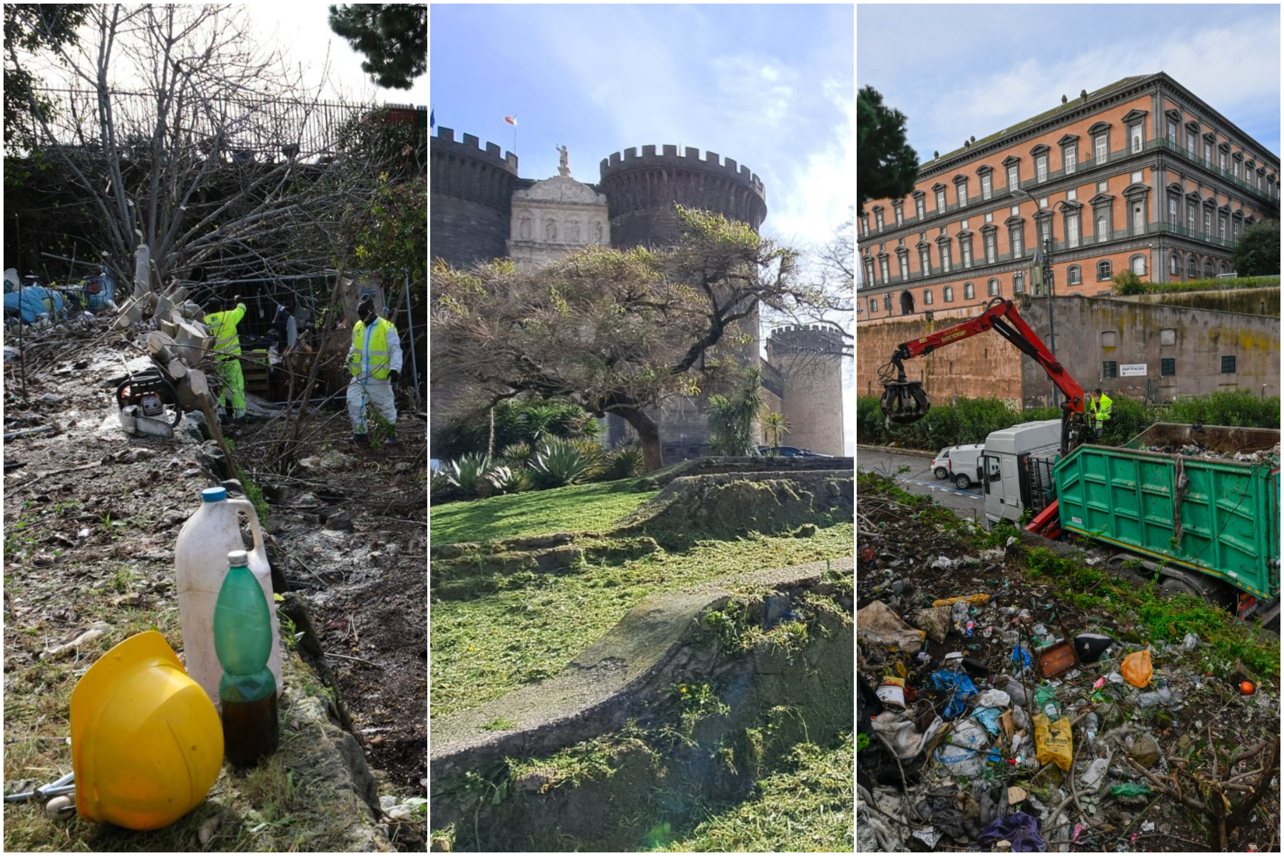 Oltre venti persone tra operai, tecnici, assistenti sociali e agenti della Polizia locale sono state impegnate, dall’alba di oggi, in un complesso intervento nell’area degli spalti del Maschio Angioino che ha restituito ai cittadini e ai turisti un importante spazio verde: un’area di circa 500 metri quadrati, ai piedi di uno dei più prestigiosi monumenti cittadini, da tempo occupata da persone senza fissa dimora e da cumuli di rifiuti di ogni genere. L’operazione ha visto impegnato personale di Napoli Servizi, Asia, Anm, Servizi Sociali del Comune, Nucleo investigativo Ambientale Emergenze Sociali della Polizia locale e Servizio Veterinario dell’Asl.