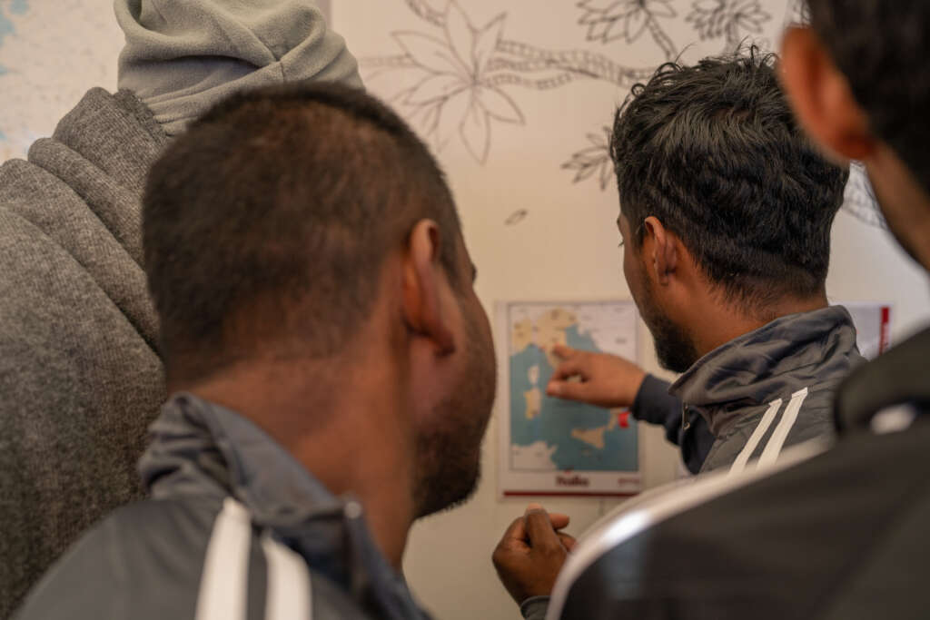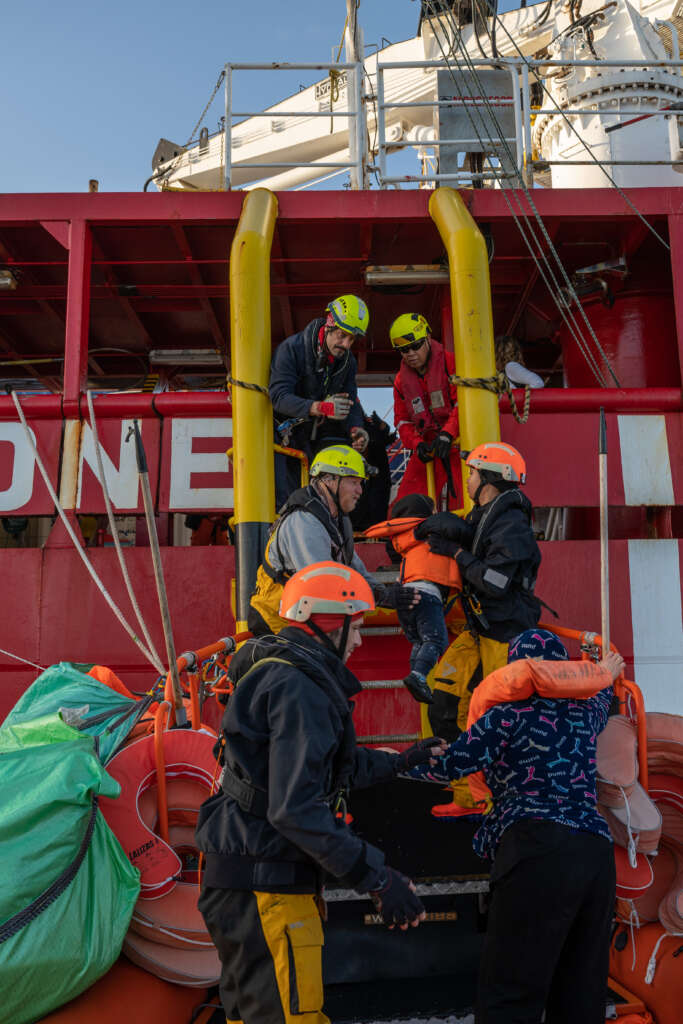 Sono rimasti in mare una sola notte, erano partiti dalla costa vicino Tripoli in un piccolo scafo grigio di vetroresina con due vecchi motori fuoribordo. “Eravamo ancora a pochi metri dalla spiaggia quando da terra ci hanno sparato, dall’alto” raccontano. “Ci siamo tuffati in acqua. Quelli rimasti coi bambini si sono abbassati al centro dello scafo, ma eravamo molti di più alla partenza, dieci forse quindici persone terrorizzate sono tornate a riva a nuoto”. Il ponte della Ocean Viking è in ombra, aperto sulla poppa verso il largo. Seduti a terra i naufraghi vedono la Sicilia allontanarsi. Lo sguardo si tuffa nell’acqua che, sotto i raggi del sole, trascolora nell’argento. Occhi smarriti e senza lacrime. Occhi che anche quando sorridono sembrano implorare conforto. Quando alza la testa M. dice: “Sono rimasto solo”. Il cielo è sereno.