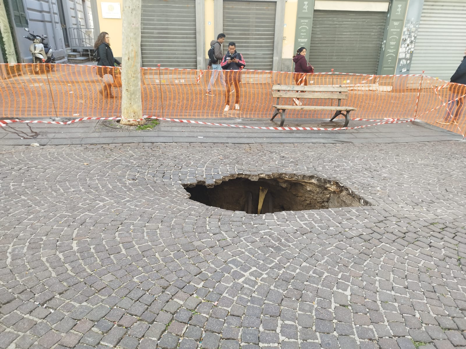 La voragine in via Scarlatti causata da una perdita della rete fognaria