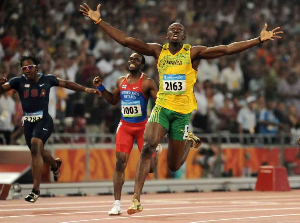 Per brevità: l’uomo più veloce al mondo. Anzi no: l’uomo più veloce della storia. Usain Bolt, “Lightning Bolt”, 11 medaglie d’oro ai Mondiali, 8 ori alle Olimpiadi, l’unico ad aver vinto tre ori nei 100 metri l’oro nei 100 e 200 metri in tre edizioni consecutive (Pechino 2008, Londra 2012 e Rio de Janeiro 2016) e in tre edizioni dei Mondiali (Berlino 2009, Mosca 2013, Pechino 2015). Ancora oggi detiene i record mondiali di 100, 200 metri e nella staffetta 4×100 metri. Ha sempre raccontato di non avere rimpianti. Comprensibilmente.