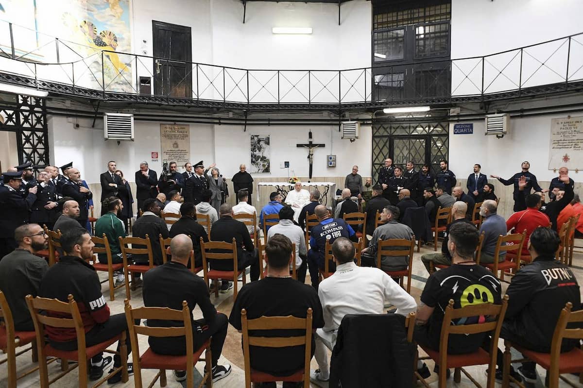 Dopo un momento di preghiera il Papa, accompagnato dal suo infermiere di fiducia Massimiliano Strappetti e dal segretario Juan Cruz Villalon, ha poi salutato individualmente ciascuno dei detenuti nella Rotonda, per poi pregare assieme a loro e impartire la sua benedizione.