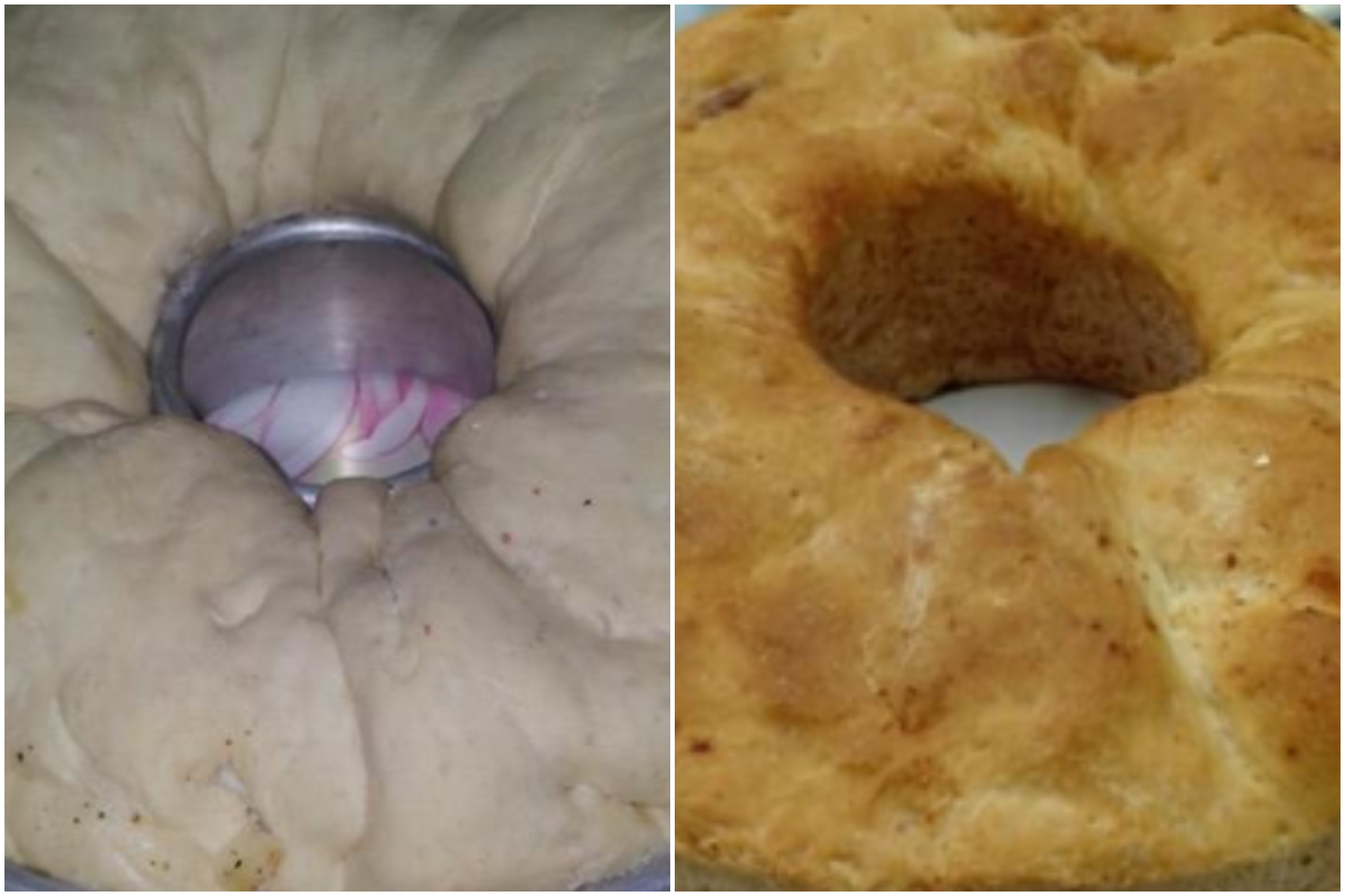 Disponete su tutta la superficie, il salame e i formaggi tagliati a dadini, le uova a pezzetti e cospargete il tutto con il pecorino. Arrotolate la pasta delicatamente e il più stretto possibile. Ungete con lo strutto uno stampo a ciambella del diametro di 28 cm (in napoletano si chiama “ruoto”), disponetevi il rotolo di pasta a ciambella, unendone bene le estremità e rimettetelo a lievitare sempre coperto in luogo tiepido per altre 2 ore.