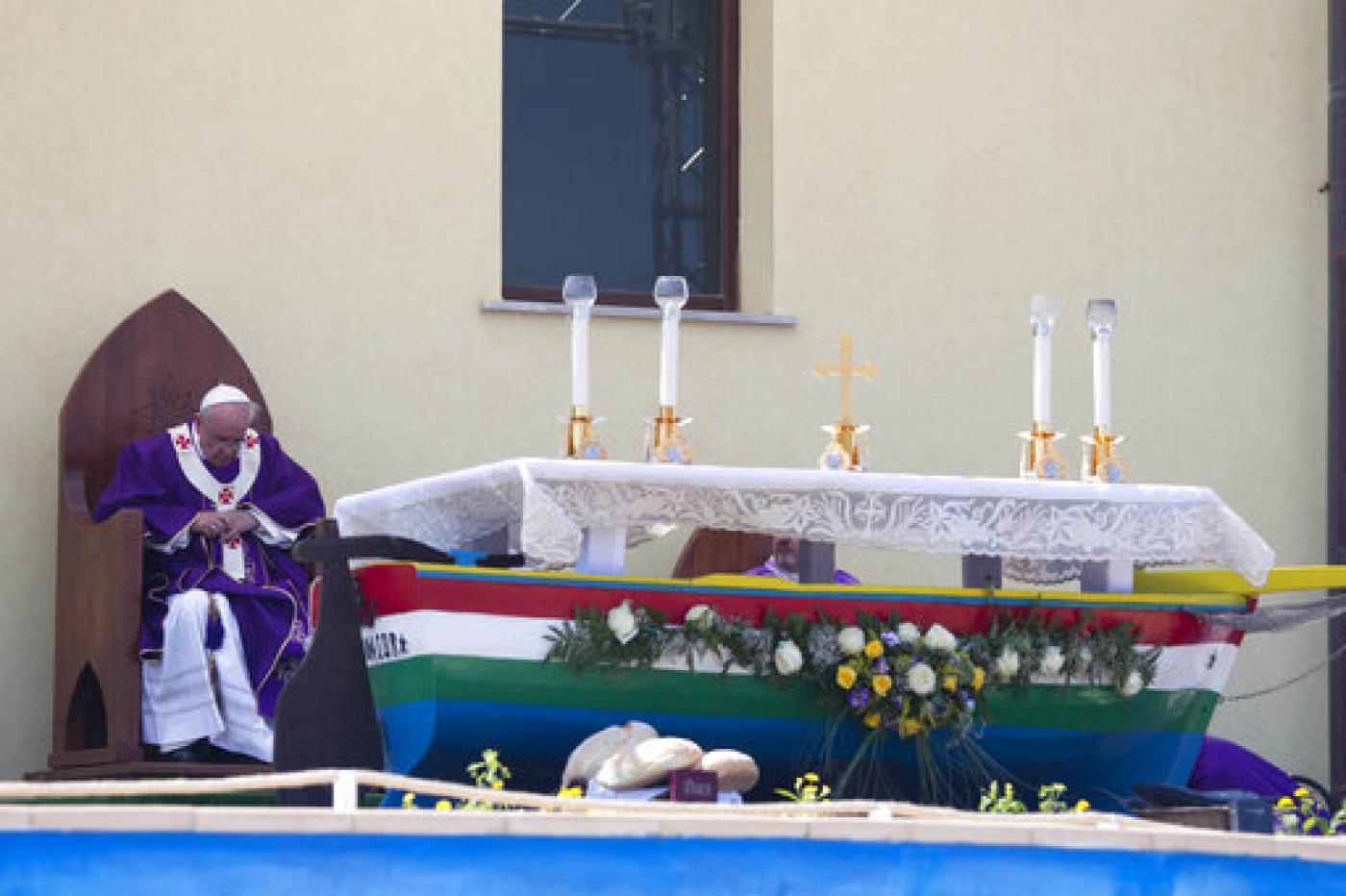 Non si ripeta per favore. Prima però vorrei dire una parola di sincera gratitudine e di incoraggiamento a voi, abitanti di Lampedusa e Linosa, alle associazioni, ai volontari e alle forze di sicurezza, che avete mostrato e mostrate attenzione a persone nel loro viaggio verso qualcosa di migliore. Voi siete una piccola realtà, ma offrite un esempio di solidarietà! Grazie! Grazie anche all’Arcivescovo Mons. Francesco Montenegro per il suo aiuto, il suo lavoro e la sua vicinanza pastorale. Saluto cordialmente il sindaco signora Giusi Nicolini, grazie tanto per quello che lei ha fatto e che fa. Un pensiero lo rivolgo ai cari immigrati musulmani che oggi, alla sera, stanno iniziando il digiuno di Ramadan, con l’augurio di abbondanti frutti spirituali. La Chiesa vi è vicina nella ricerca di una vita più dignitosa per voi e le vostre famiglie. A voi: o’scià!