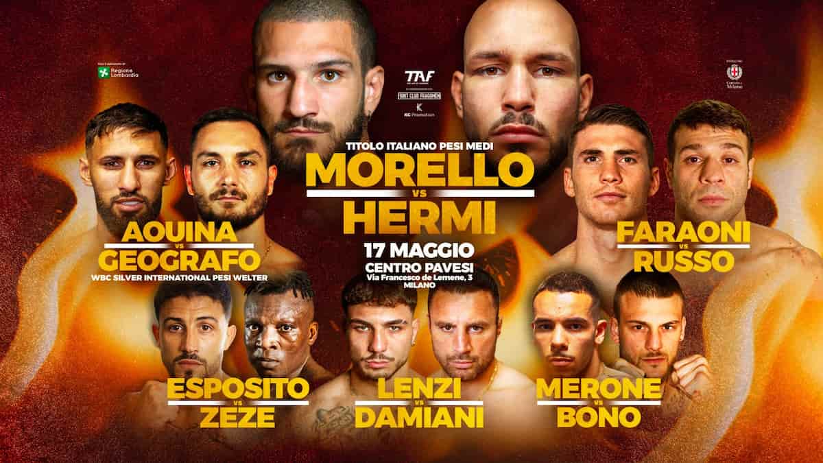 Grande attesa infine per il main event: quello per il titolo italiano dei medi tra Dario “Spartan” Morello e Yassin Hermi. “No Morello, no party: sono tornato! TAF è bello, ma di meno, senza Morello”, le parole del 31enne calabrese trapiantato a Bergamo, il pugile più mediatico del momento. “Se avessi un centesimo per ogni frase simile che i miei avversari mi hanno detto, mi sarei già ritirato con il conto in banca pieno. Ho accettato questo incontro perché per me è un money match, l’offerta economica è stata allettante, altrimenti non avrebbe avuto senso: sto aspettando di poter disputare il titolo europeo, una sconfitta contro Hermi sarebbe un passo indietro pesante, è un match pericoloso. La gente mi conosce per il mio trash talking. Io però lo faccio in modo intelligente, senza buttarla in caciara, evitando di arrivare a insulti o minacce. Ecco perché con Hermi non mi sono divertito a farlo, non mi ha mai stimolato. Esagera, spinge troppo e la mette su un piano che non mi piace… E non mi fa nessuna paura. È arrivato il momento di menare, questa volta più che mai”.