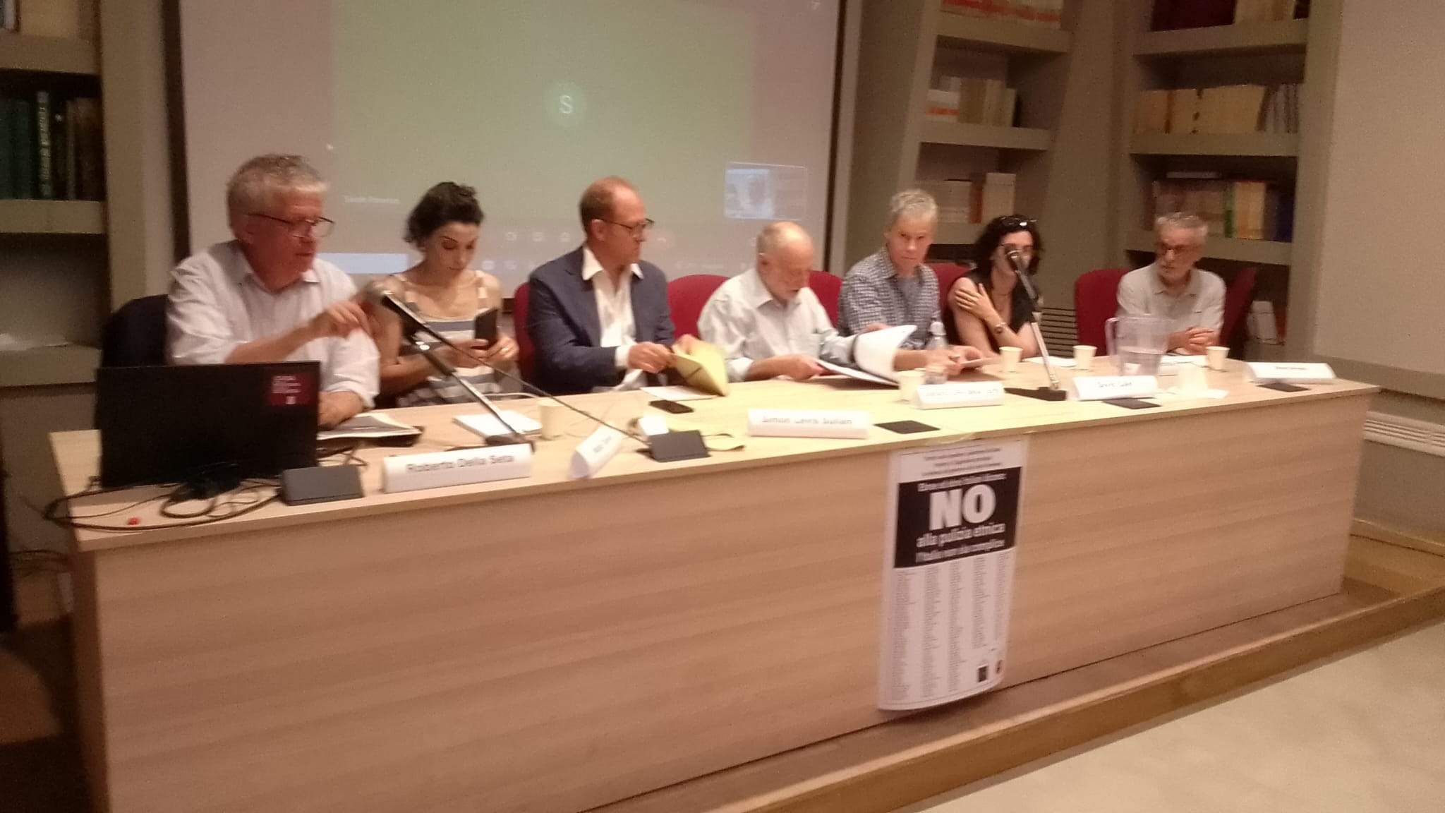 L’incontro è stato presentato da Silvio Pons, dell’Istituto Gramsci. Sono intervenuti Roberto della Seta, Stefano Levi della Torre, Simon Levis Sullam, David Calef (del gruppo Mai Indifferenti), Martina Piperno (del Laboratorio Ebraico Antirazzista, formato soprattutto da giovani) e Widad Tamimi, la cui madre apparteneva ad una storica famiglia ebrea di Trieste, mentre il padre era un profugo palestinese. In collegamento da Israele sono intervenuti la psicoterapeuta italo-israeliana Sarah Parenzo e Gadi Algazi, voce del movimento pacifista israeliano e uno dei primi obiettori di coscienza: nel 1982 si è infatti rifiutato di andare a combattere in Libano, scelta che ha pagato con il carcere.
