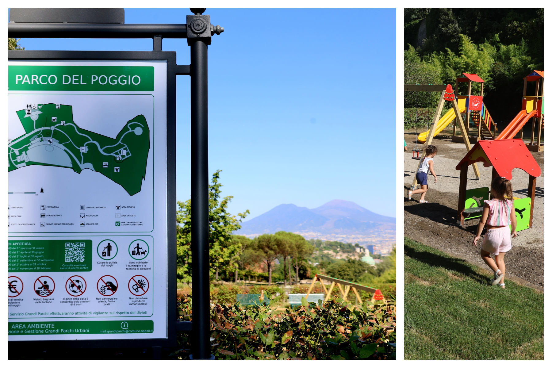 Conclusi i lavori, è stato riaperto lo scorso venerdì pomeriggio il Parco del Viale del Poggio, uno dei polmoni verdi più panoramici della città: circa 40mila metri quadrati situati a 195 metri sul livello del mare, nella parte orientale delle colline di Napoli. Il progetto di riqualificazione – finanziato dal Piano Strategico della Città Metropolitana e gestito dal Comune di Napoli – ha previsto, tra gli interventi principali, il restyling completo dell’area giochi, con attrezzature moderne e inclusive, e il recupero della biblioteca, degli spalti e del palco, che torneranno ad ospitare proiezioni, spettacoli e manifestazioni culturali.