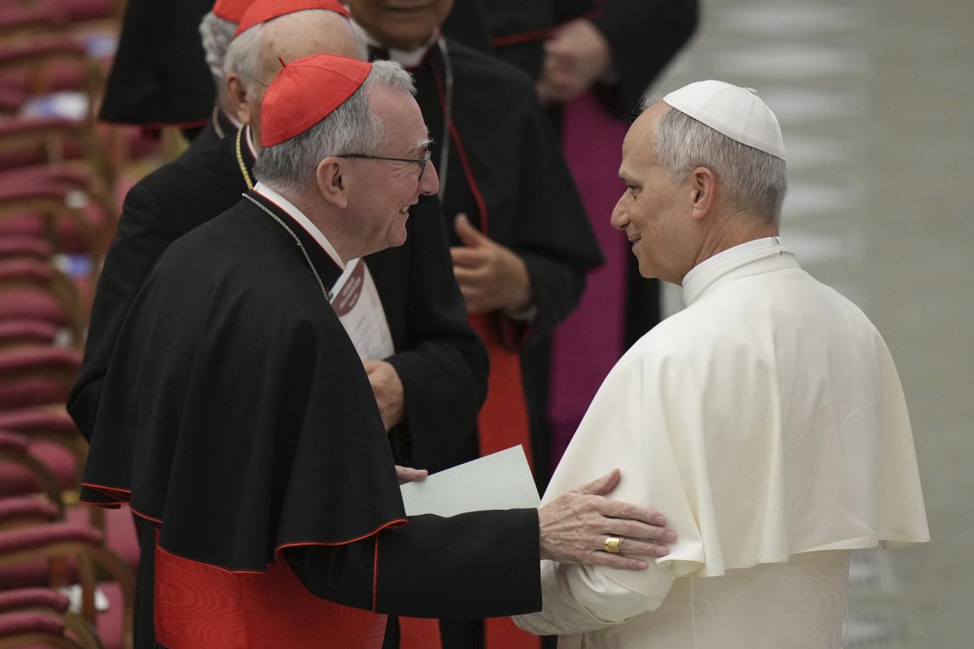 Nessuno si aspettava una risposta da parte del Vaticano, che in questi casi di solito mantiene riservatezza e silenzio. O al massimo lascia filtrare prese di posizione anonime. Invece la risposta arriva eccome, ufficialissima, arriva come un tornado. Chi la fornisce è addirittura il vertice dei vertici della Chiesa: il Papa in persona. Uscendo da Castel Gandolfo, ieri pomeriggio, Leone si limita a pronunciare 13 parole, che sono altrettante frecciate: “Preferisco non commentare, ma il Cardinale ha espresso l’opinione della Santa Sede”. Cosa c’era scritto nella nota rilasciata dall’ambasciatore? “La recente intervista al Cardinale Parolin, sebbene sicuramente ben intenzionata, rischia di minare gli sforzi per porre fine alla guerra a Gaza e contrastare il crescente antisemitismo (…). Ciò che più preoccupa è l’uso problematico dell’equivalenza morale laddove non è pertinente. Ad esempio, l’applicazione del termine ‘massacro’ sia all’attacco genocida di Hamas del 7 ottobre sia al legittimo diritto di Israele all’autodifesa. Non esiste equivalenza morale tra uno Stato democratico che protegge i propri cittadini e un’organizzazione terroristica intenzionata a ucciderli. Ci auguriamo che le dichiarazioni future riflettano questa importante distinzione”.