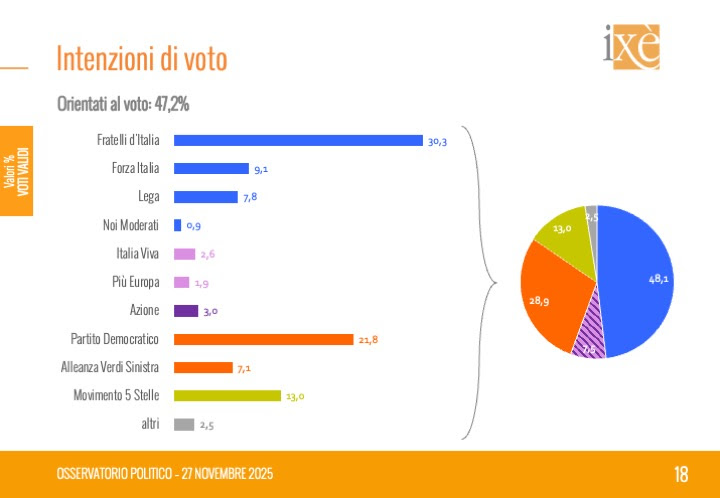 Gli strascichi del caso Garofani, con l’attacco meloniano al Quirinale. L’ultima tornata di elezioni Regionali che hanno visto il primo passaggio a vuoto elettorale di Fratelli d’Italia, il partito di Giorgia Meloni. Il confronto-scontro sul referendum sulla Giustizia in programma nella primavera del 2026. Spunti e tendenze sono misurate nell’ultimo sondaggio dell’Istituto Ixè tra orientamenti di voto e principali questioni politiche in ballo, nessuna senza conseguenze.