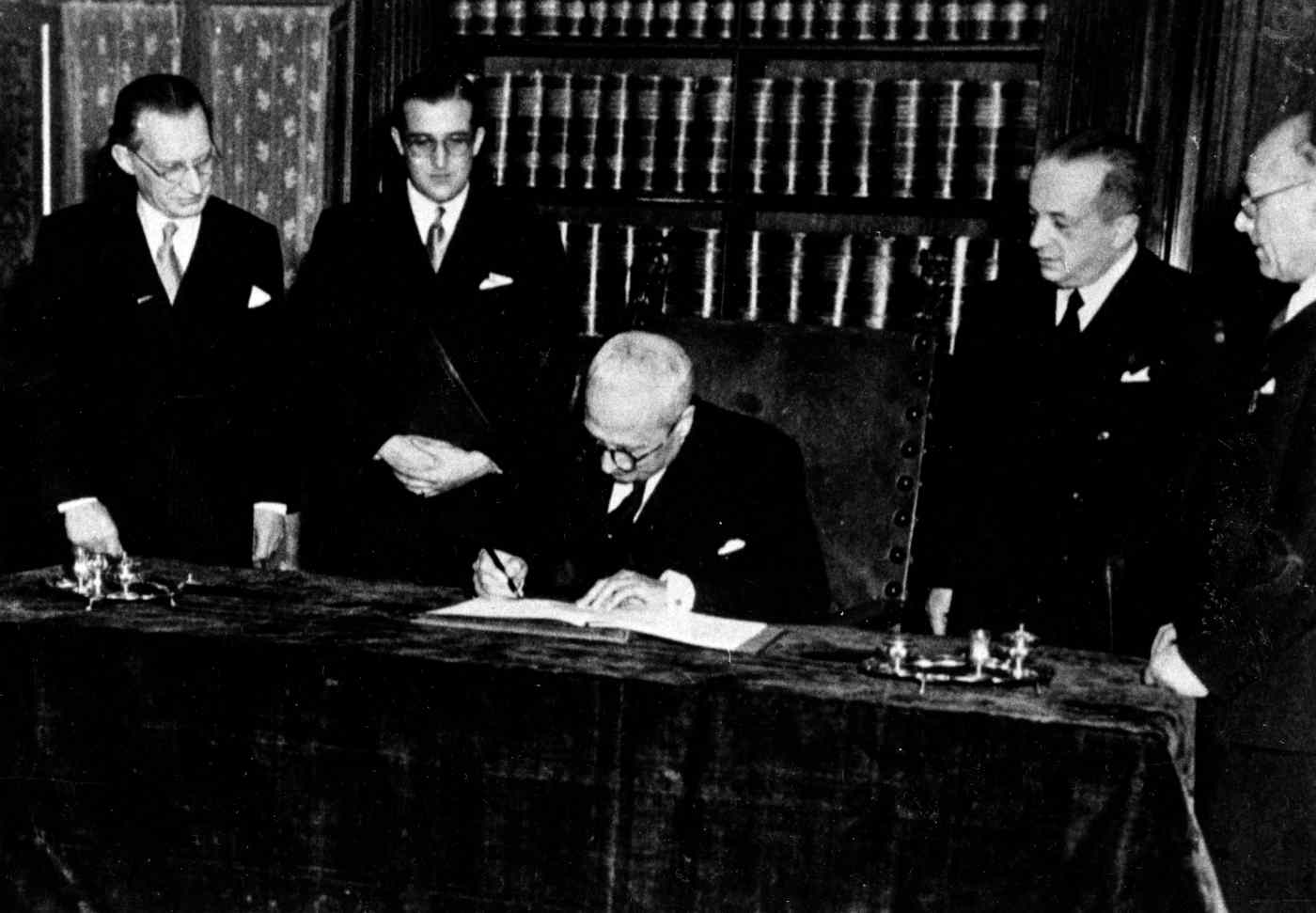 Già al suo primo sorgere, la Repubblica volle stendere le sue mani indulgenti e volgere il suo sguardo benigno e sereno verso tanti, che pure non avevano esitato a straziare la Patria italiana, ad allearsi con i suoi nemici, a colpirne i figli più eroici. Il rinnovato gesto di amistà, del quale vi siete fatti promotori, vuole oggi esprimere lo spirito che ha informato i nostri lavori, in ognuno di noi, su qualunque banco si sedesse, a qualunque ideologia ci si richiami. L’Assemblea ha pensato e redatto la Costituzione come un solenne patto di amicizia e fraternità di tutto il popolo italiano, cui essa lo affida perché se ne faccia custode severo e disciplinato realizzatore. E noi stessi, onorevoli deputati, colleghi cari e fedeli di lunghe e degne fatiche, conclusa la nostra maggiore opera, dopo avere fatta la legge, diveniamone i più fedeli e rigidi servitori. Cittadini fra i cittadini, sia pure per breve tempo, traduciamo nelle nostre azioni, le maggiori e le più modeste, quegli ideali che, interpretando il voto delle larghe masse popolari e lavoratrici, abbiamo voluto incidere nella legge fondamentale della Repubblica.