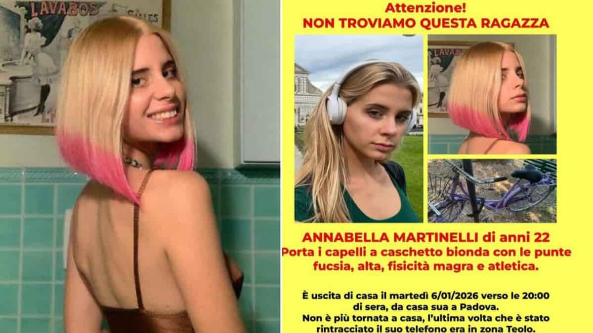 Ancora nessuna traccia di Annabella Martinelli, la 22enne residente in provincia di Padova sparita nel nulla la sera di martedì 6 gennaio 2026. Le ricerche si stanno concentrando nella zona di Teolo e dei Colli Euganei, sono coordinate dalla Prefettura di Padova che ha attivato il Piano di ricerca per le persone scomparse. Alle operazioni partecipano i Vigili del Fuoco, il Soccorso Alpino e Speleologico Veneto (CNSAS), le forze dell’ordine, la Protezione Civile e numerosi volontari.